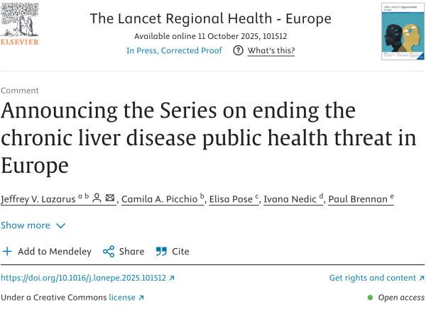 Barcelona, 13 October 2025 — Chronic liver disease (CLD) is an escalating but under-recognised public health threat across Europe, with devastating human and economic costs. Supported by the Global Think-Tank on Steatotic Liver Disease, a new Lancet Regional Health–Europe Series will bring together more than 50 experts to map the burden, identify the policy gaps, and recommend practical solutions to turn the tide on liver disease.